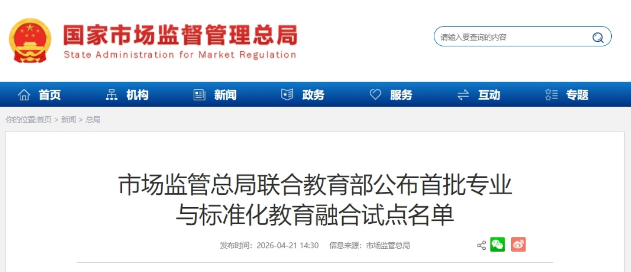 此次试点是市场监管总局、教育部首次联合开展的全国性专业与标准化教育融合试点工作,旨在加快培养科技创新与标准研制的“双通型”人才,夯实标准化事业高质量发展的人才基础。