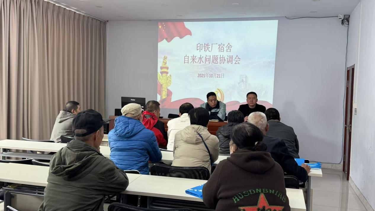 2025年10月21日,印铁厂自来水问题专项协调会在社区居委会顺利召开。王晨晨协助社区书记组织会议,现场逐条梳理问题,如实反馈居民诉求,清晰列明管网漏水、欠费纠纷、管道老化等核心问题,为会议制定针对性解决方案提供了详实可靠的依据。