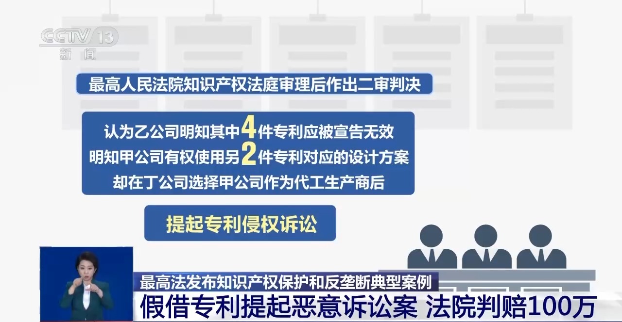 最高人民法院知识产权法庭法官 雷艳珍:甲公司在遭到恶意诉讼后,出于规避法律风险的考虑,主动放弃了丁公司发送的订单,由此遭受的合理预期利益损失也属于侵权损害赔偿的范围。