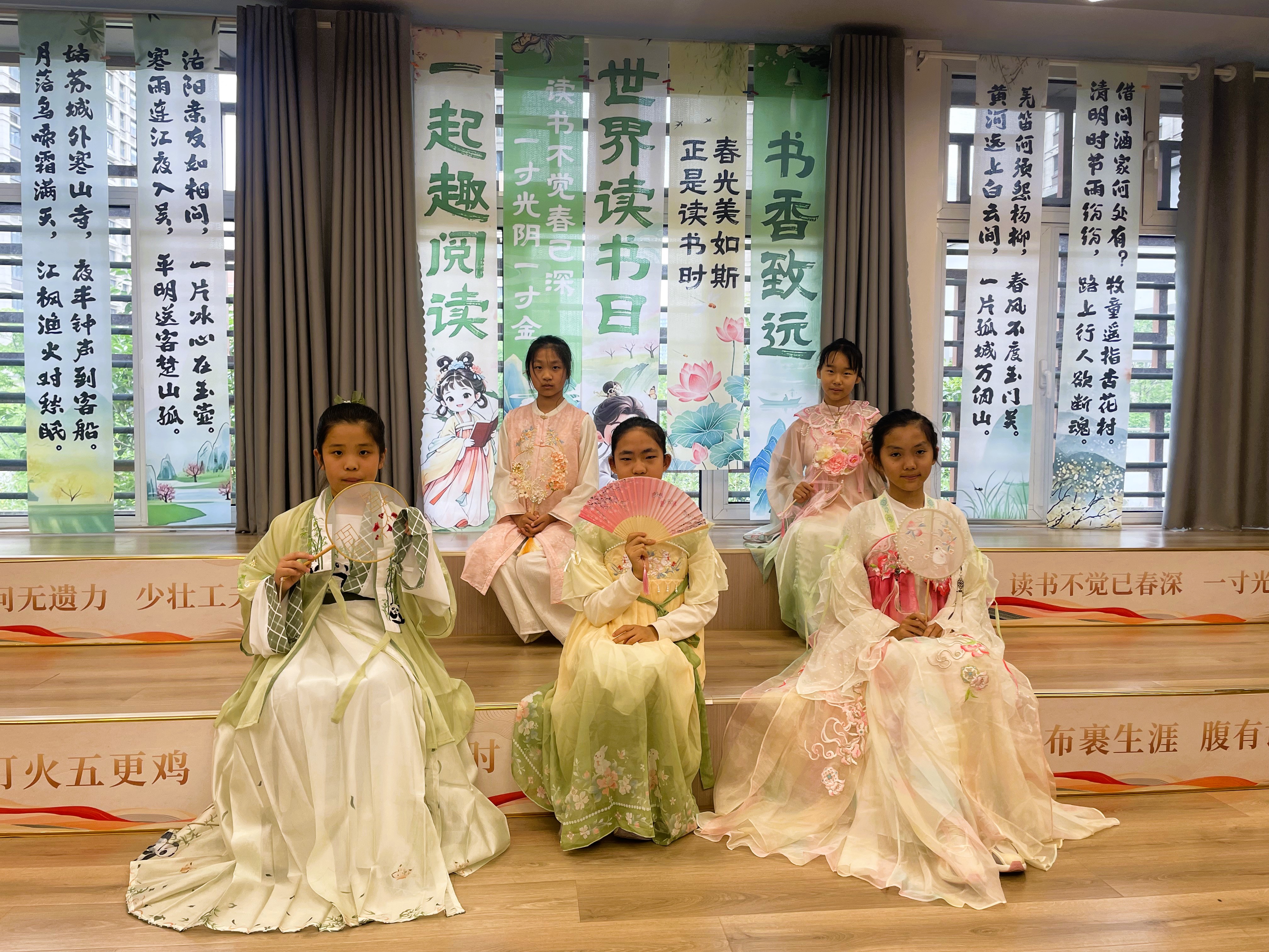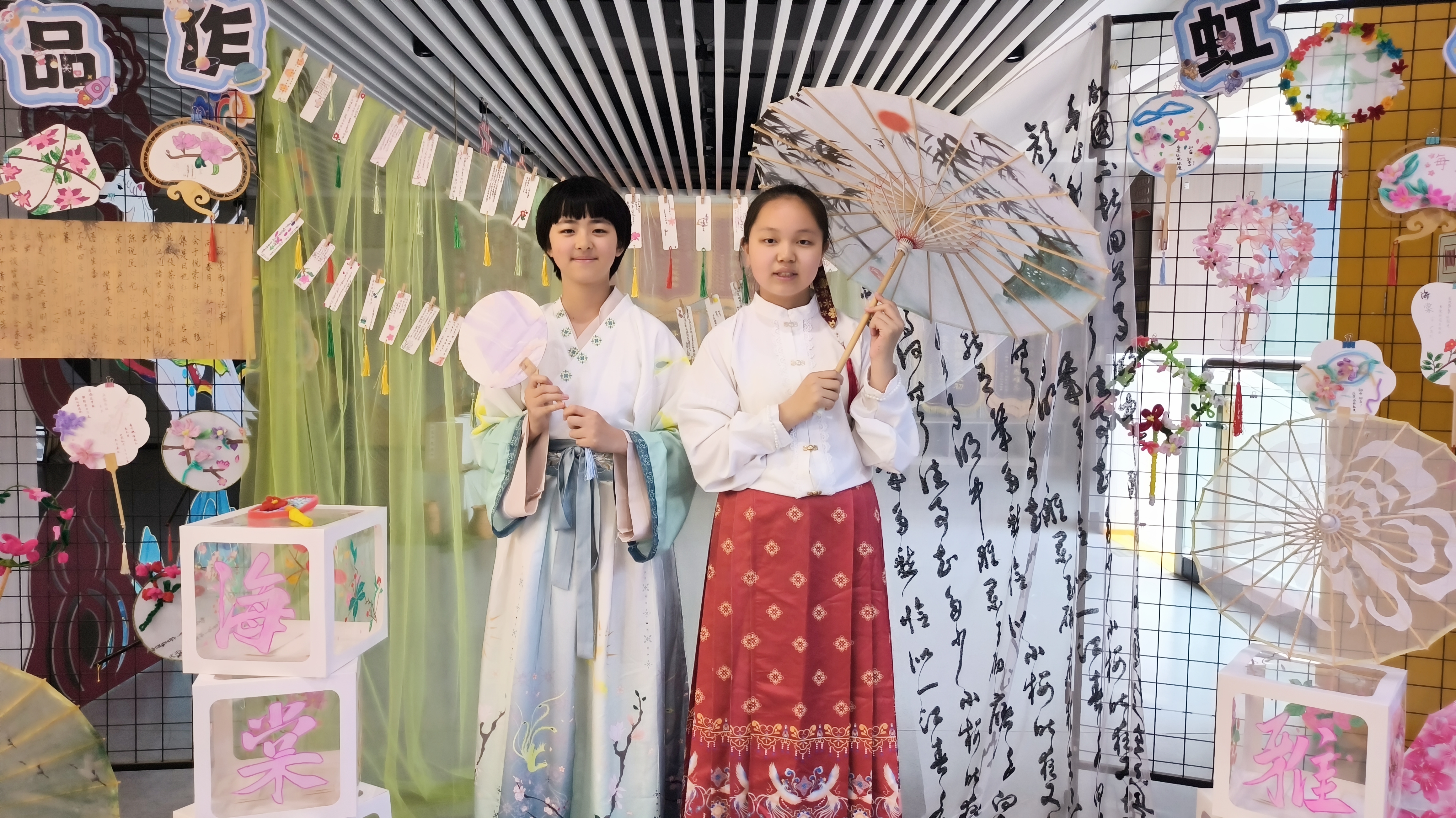 艺术创作环节,队员们以笔为媒,巧绘海棠扇面,用画笔诠释心中的海棠风韵。恰逢世界读书日,学校还举办了别开生面的海棠雅集。飞花令、诗词拼贴、传统投壶、品茗交流……学生们在趣味互动中展示学习成果,沉浸式感受传统文化的独特魅力。