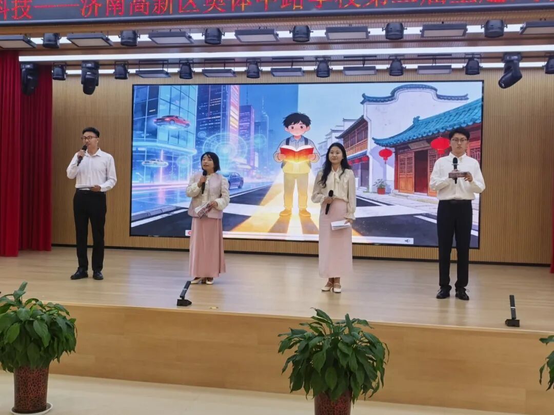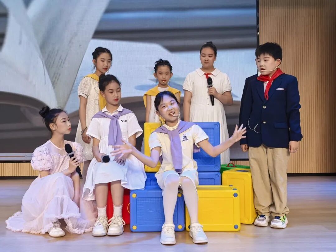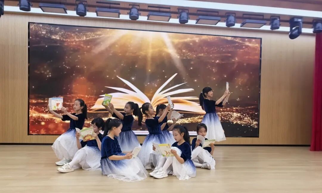 教师朗诵《我在书里等你》温情动人,学生情景剧《在书香世界里成长》生动鲜活。