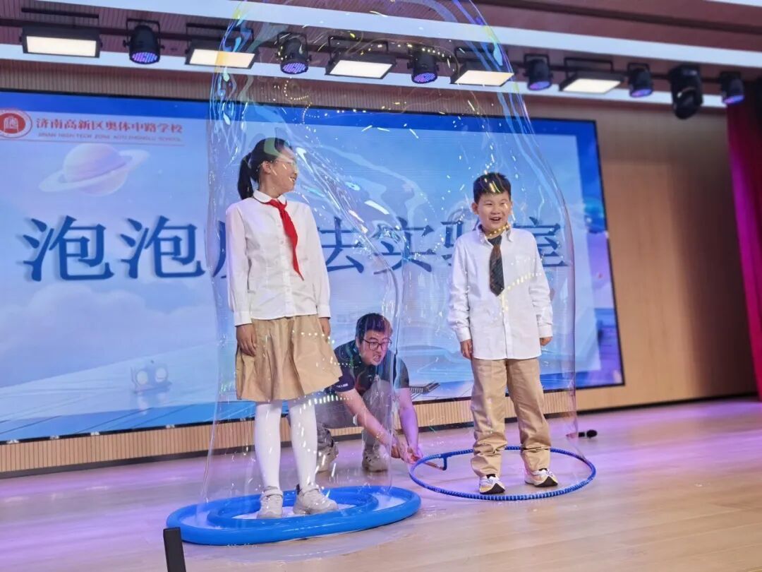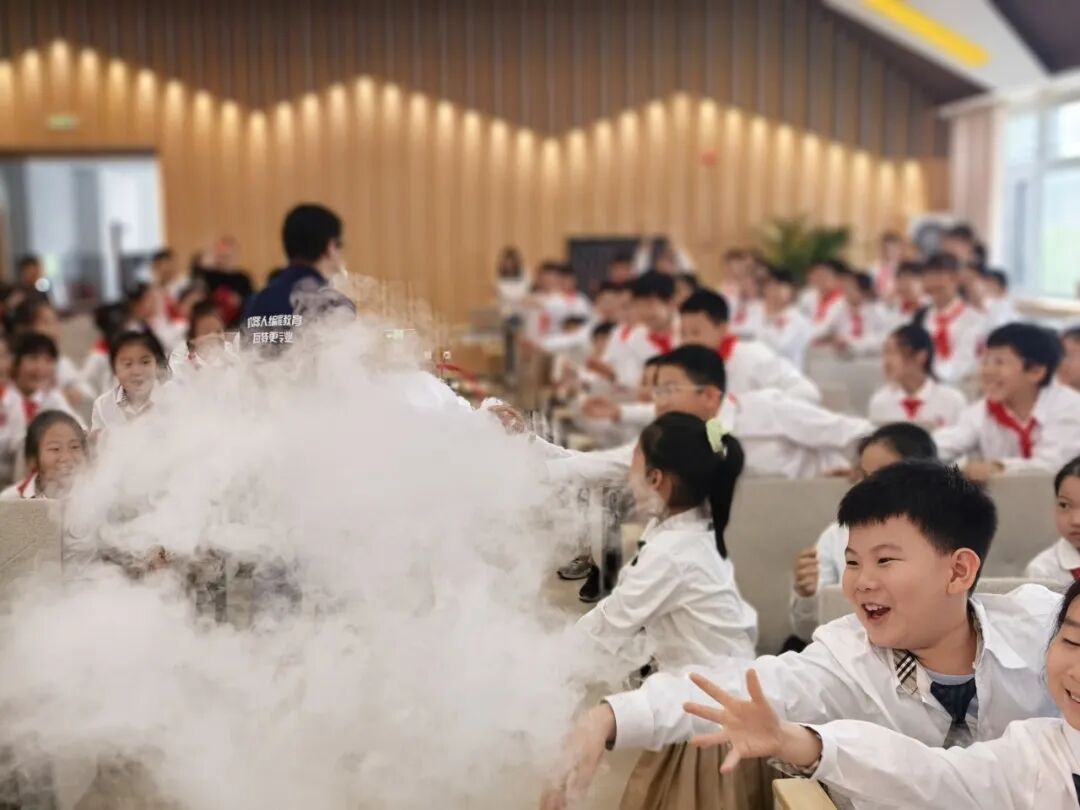 干冰实验、梦幻泡泡、无人机表演等科学秀精彩上演,奇妙的科学现象让现场掌声不断,孩子们积极上台互动,将氛围推向高潮。