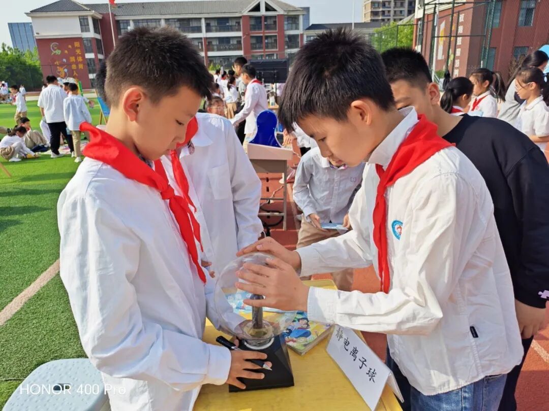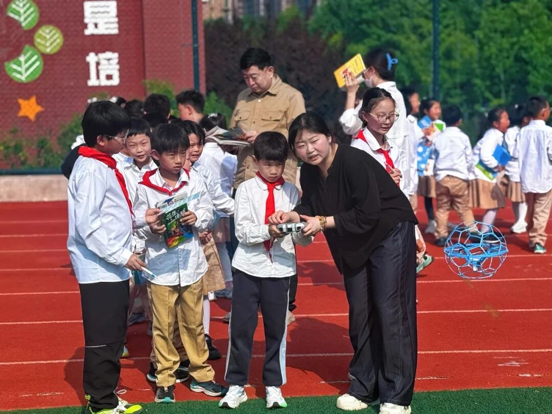 无人机在障碍间划出银色的弧线;雪浪声波让声音现出波纹的形状,静电离子球点亮指尖的魔法;磁力过桥、巧取乒乓球、自制彩虹……那些曾静静躺在科普读物里的原理,此刻在指尖苏醒;那些从文字间读到的“为什么”,终于变成了亲手验证的“原来如此”。从书中来,到手中去。知识,就这样在书香与科技的相遇里,变成了童年最亮的光。