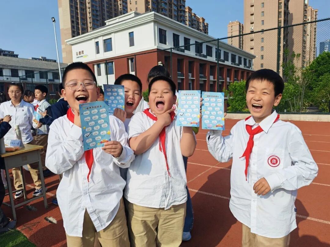 各年级代表交换“漂流卡”,卡片上是同学们阅读后提出的问题。这不仅是书籍分享,更是思想的碰撞与互助解答,让阅读成为一场智慧的接力。