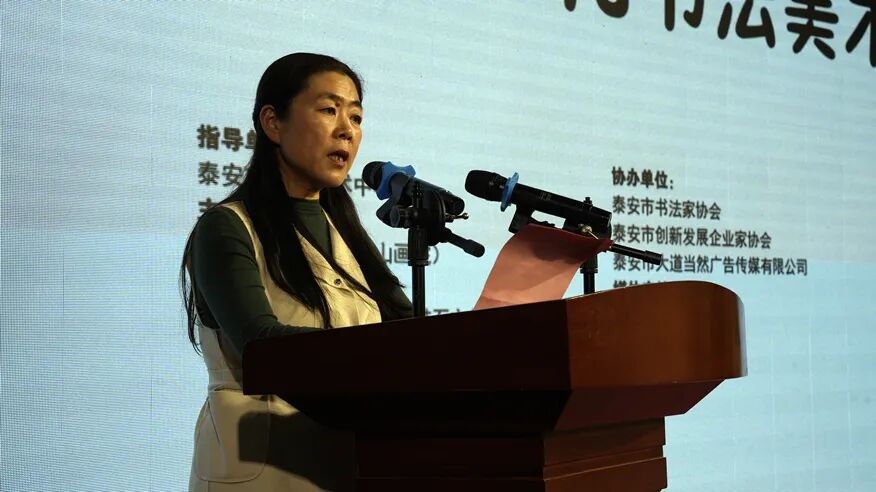 泰安市美术馆(泰山画院)副馆长、副院长王天主持展览开幕式