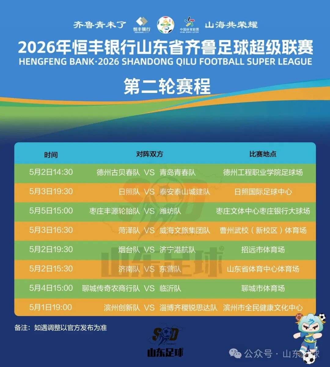 赛程丨2026年恒丰银行山东省齐鲁足球超级联赛第二轮