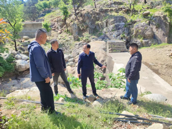 4月24日,乡党委书记、四级调研员边立峰到东御道查看进山道路提升施工进展情况。