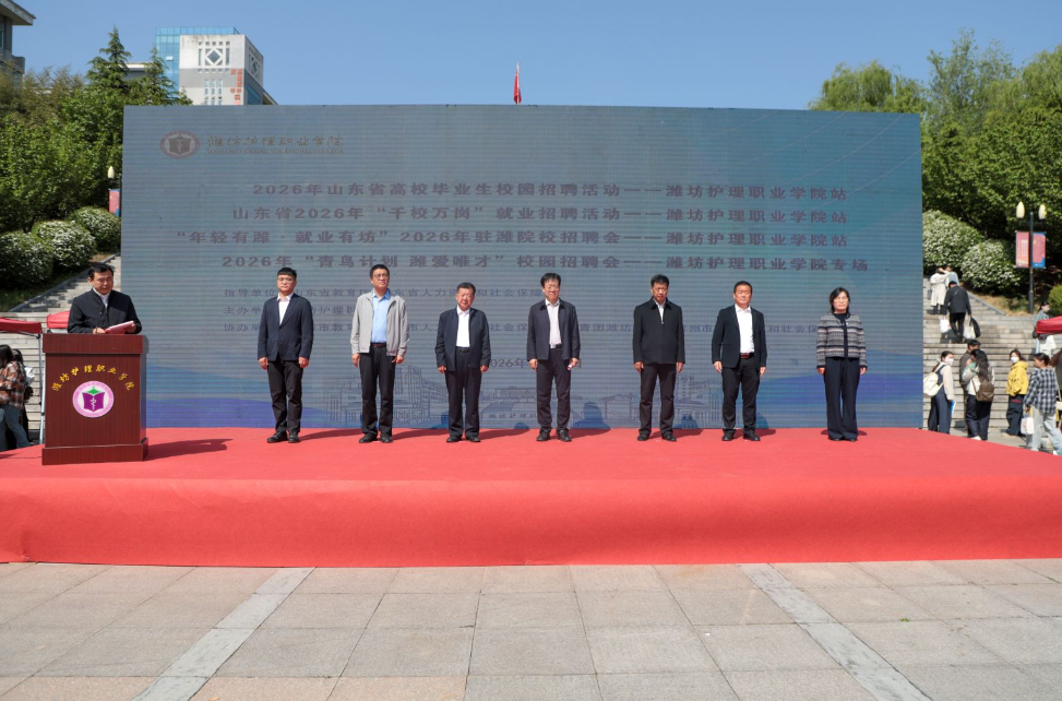 随后,与会领导与嘉宾共同为本次校园招聘会启幕,标志着潍坊护理职业学院2026年校园招聘活动正式开始。