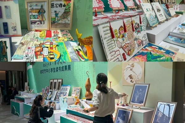 An exhibition displays the reading-inspired creations of primary and secondary school students in Weifang. [Photo/Haibao News]