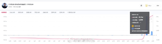 第三方数据显示,明明、天权、中灿、林林抖音平台近三日合计涨粉超10万。