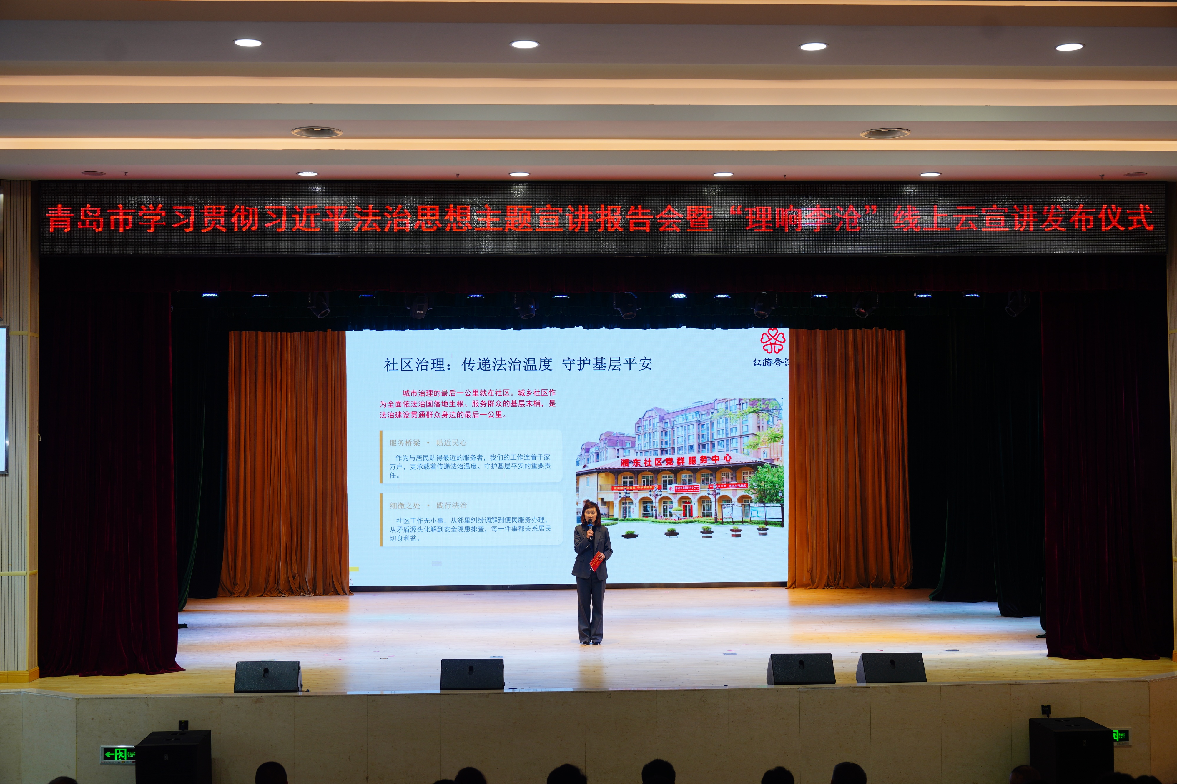 活动现场,湘潭路街道湘东社区党委书记赵鑫以《以法治微光 照亮社区治理之路》为题作故事宣讲;同步展播了“理响李沧”线上云宣讲集锦视频短片和《以法治作答时代问卷》《一场检察监督背后的李沧温度》等宣讲视频。
