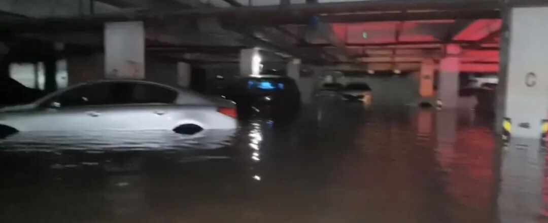 小区车库入口被淹