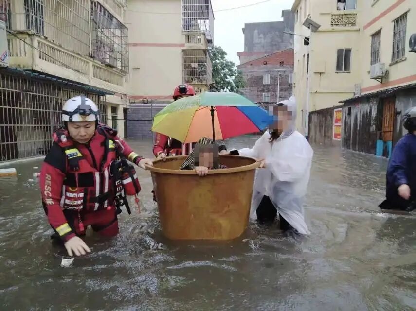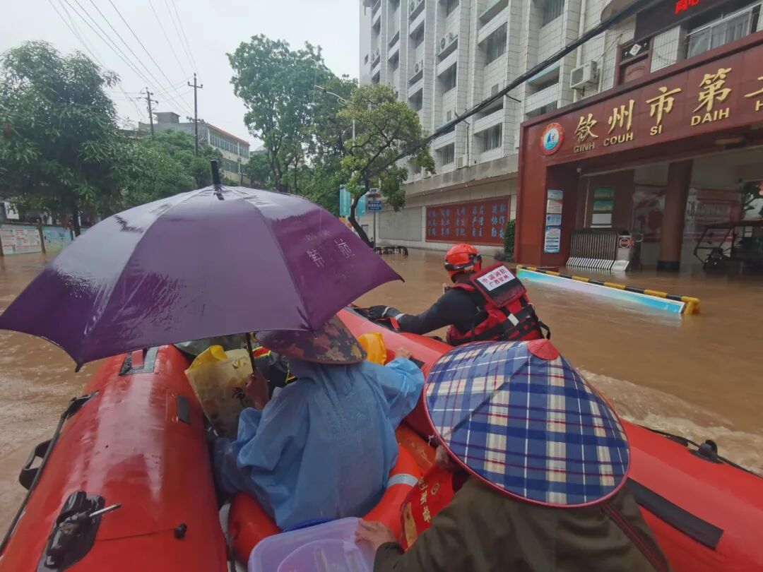 据钦州消防消息,在受涝情况较为严重的部分路段,水深齐腰,沿街商铺被水倒灌,不少群众被困家中或途中。消防救援人员携带救生衣、水域救援服、担架等专业装备,乘坐橡皮艇艰难挺进受灾街道和居民楼。他们通过喊话、敲门等方式逐户排查,对行动不便的老人、孕妇,采用搀扶、背负、怀抱等方式小心转移至橡皮艇,再分批转运至安全区域。