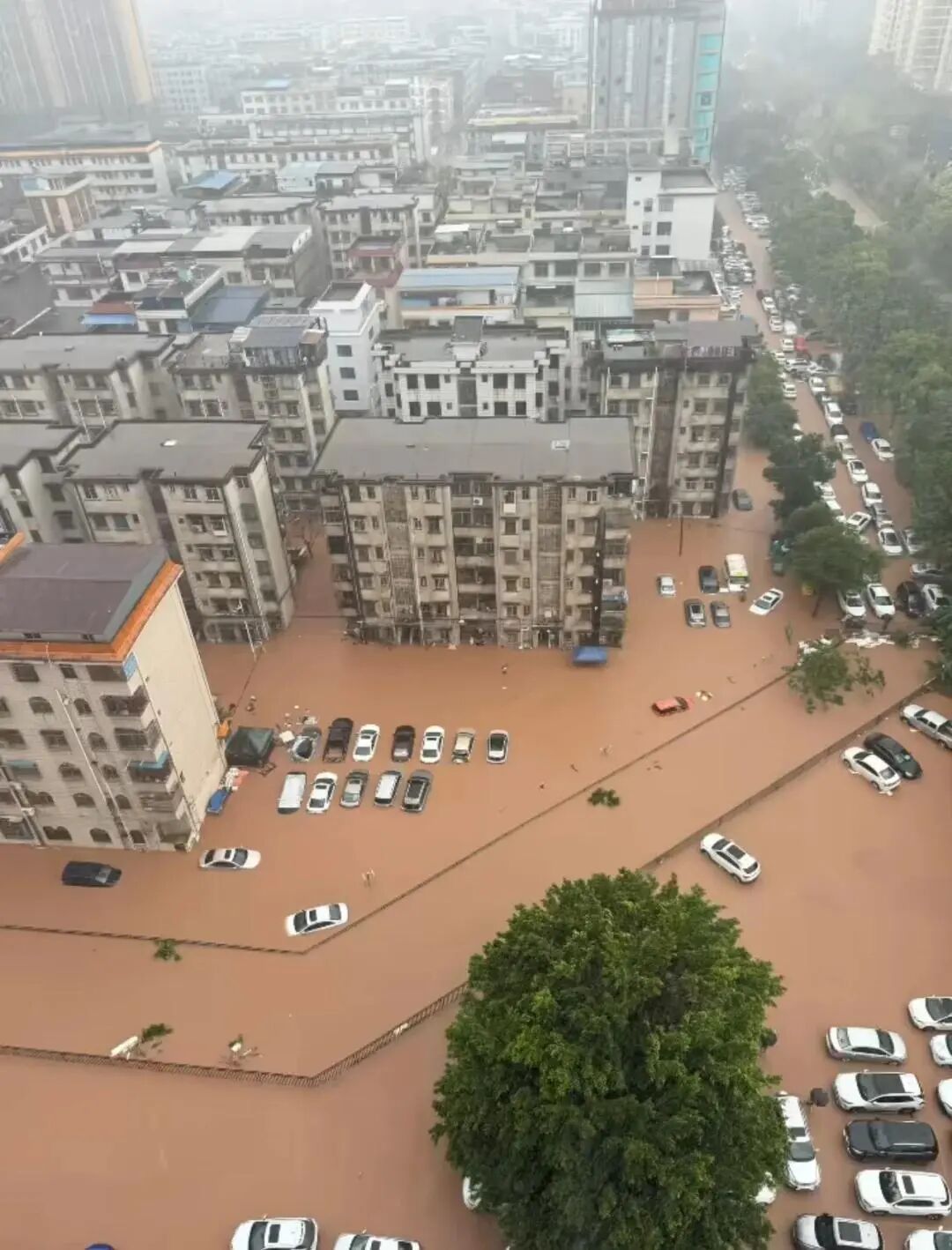 大量车辆被淹