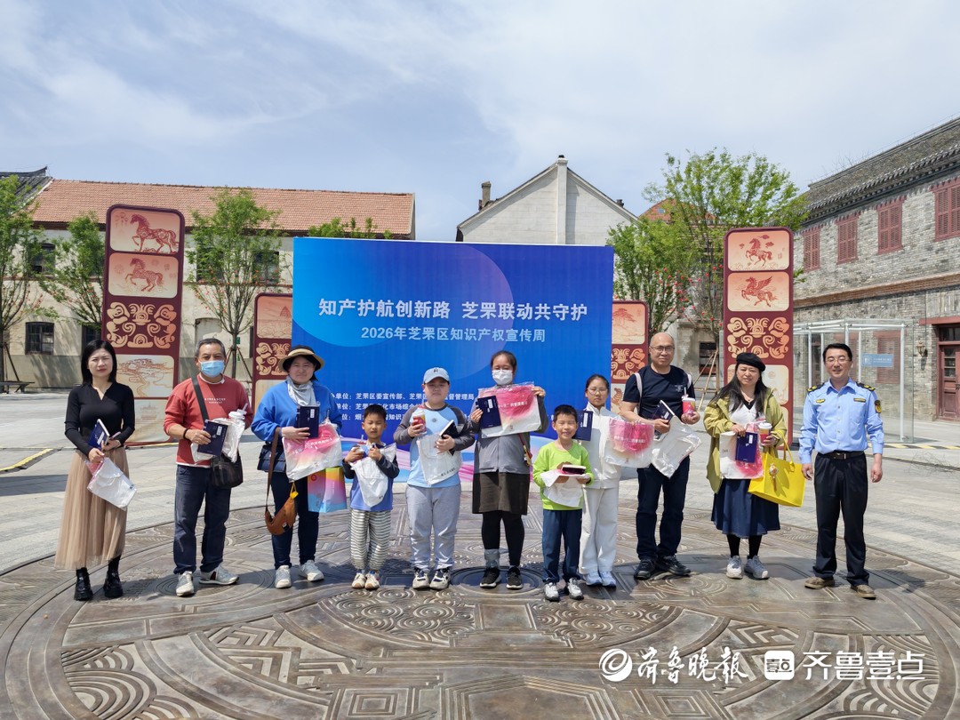 从烟台芝罘区获悉,4月26日上午,以“知产护航创新路 芝罘联动共守护”为主题的2026年芝罘区知识产权宣传周活动在朝阳街盛典广场拉开帷幕。本次活动由芝罘区委宣传部、芝罘区市场监督管理局、烟台市公安局芝罘分局联合主办,芝罘区文化市场综合执法大队承办,通过寓教于乐的形式,将知识产权保护知识送到了市民和游客身边。