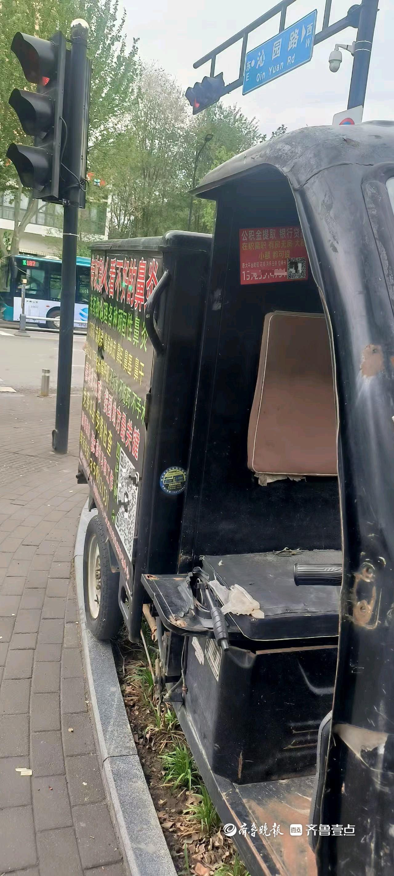 情报站·随手拍|济南沁园路绿化带停放废弃三轮车,市民盼清理