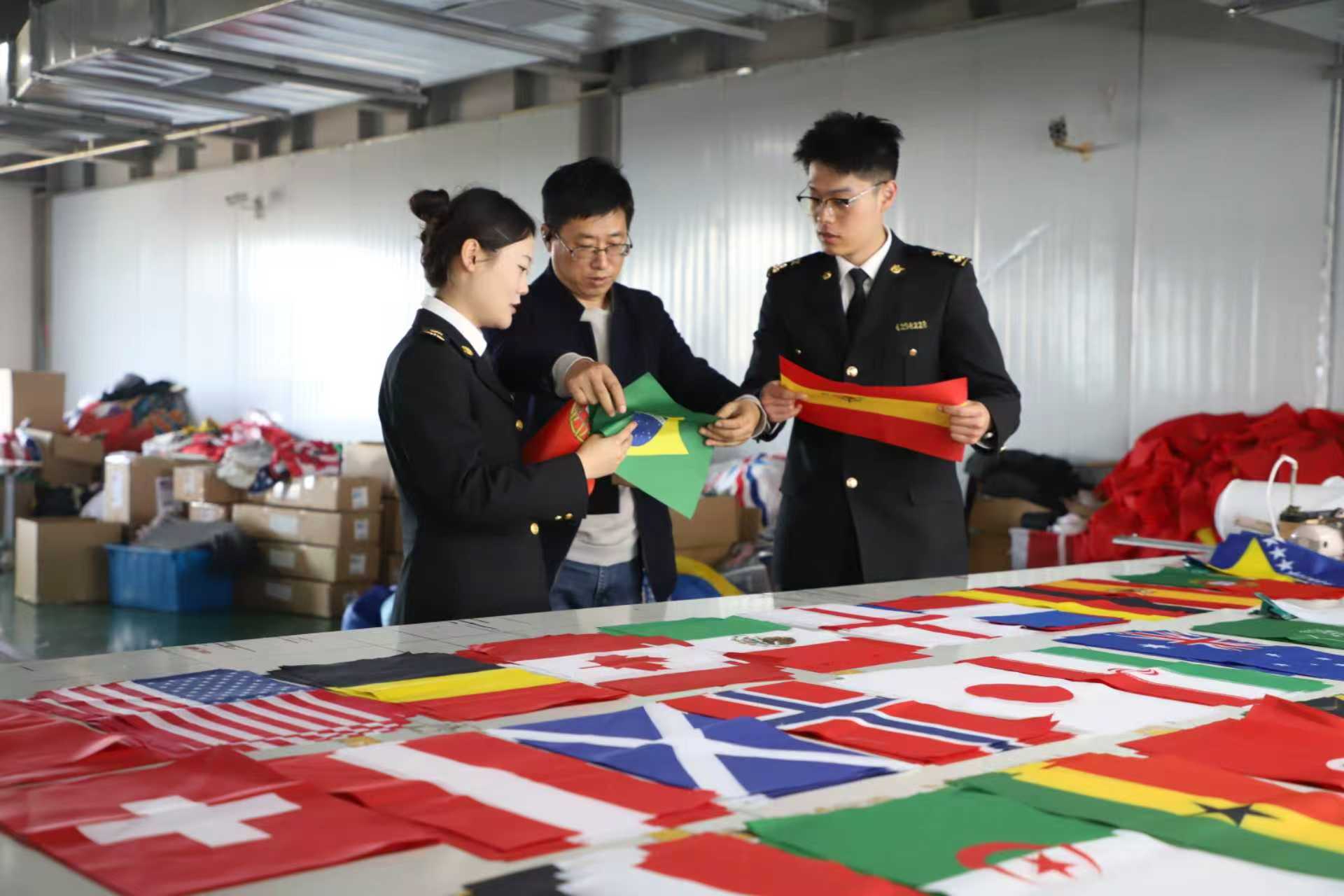关员在企业调研世界杯旗帜生产出口情况