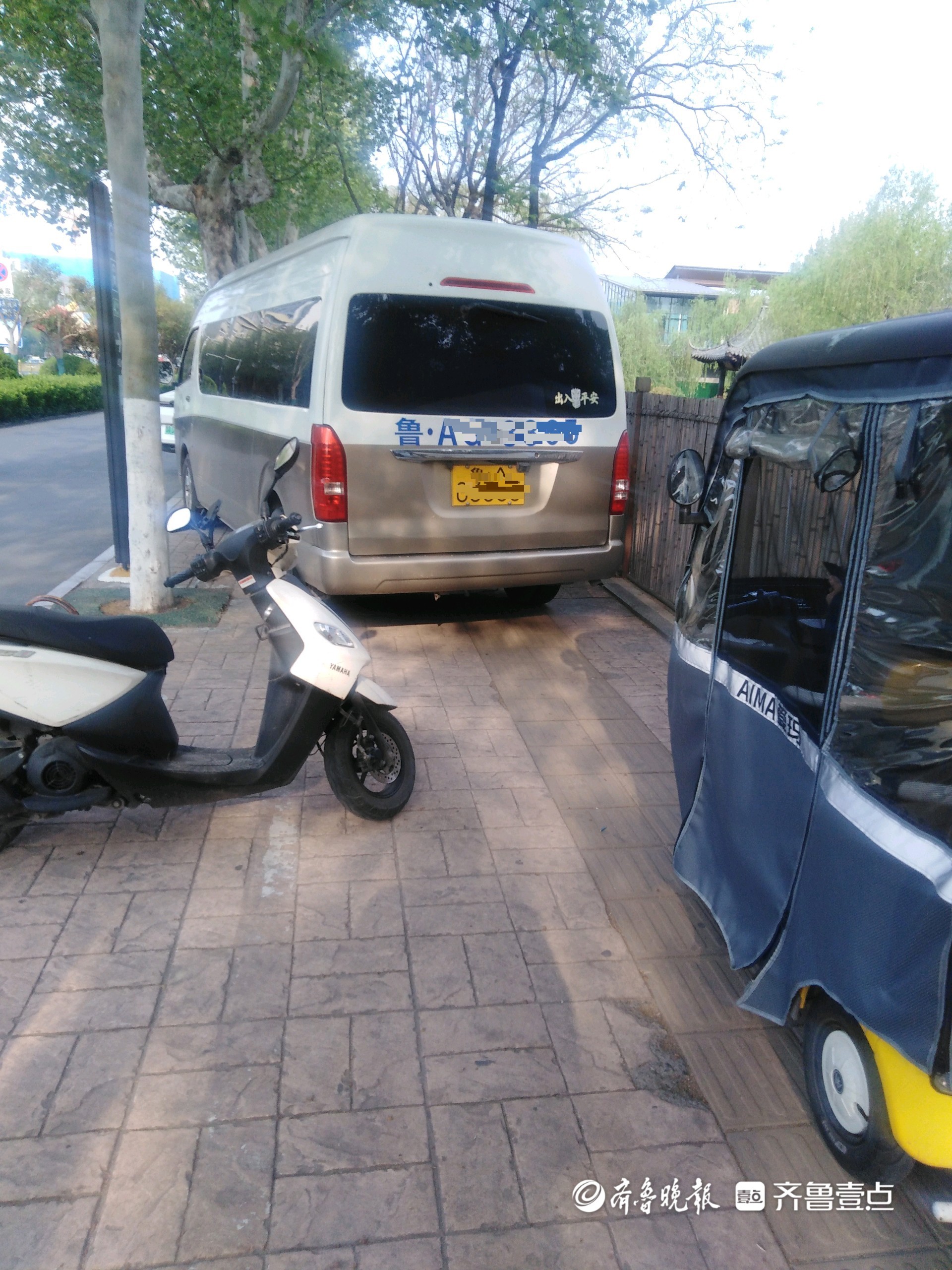 情报站·随手拍|济南槐苑广场旁机动车乱停放,阻碍交通亟需整治