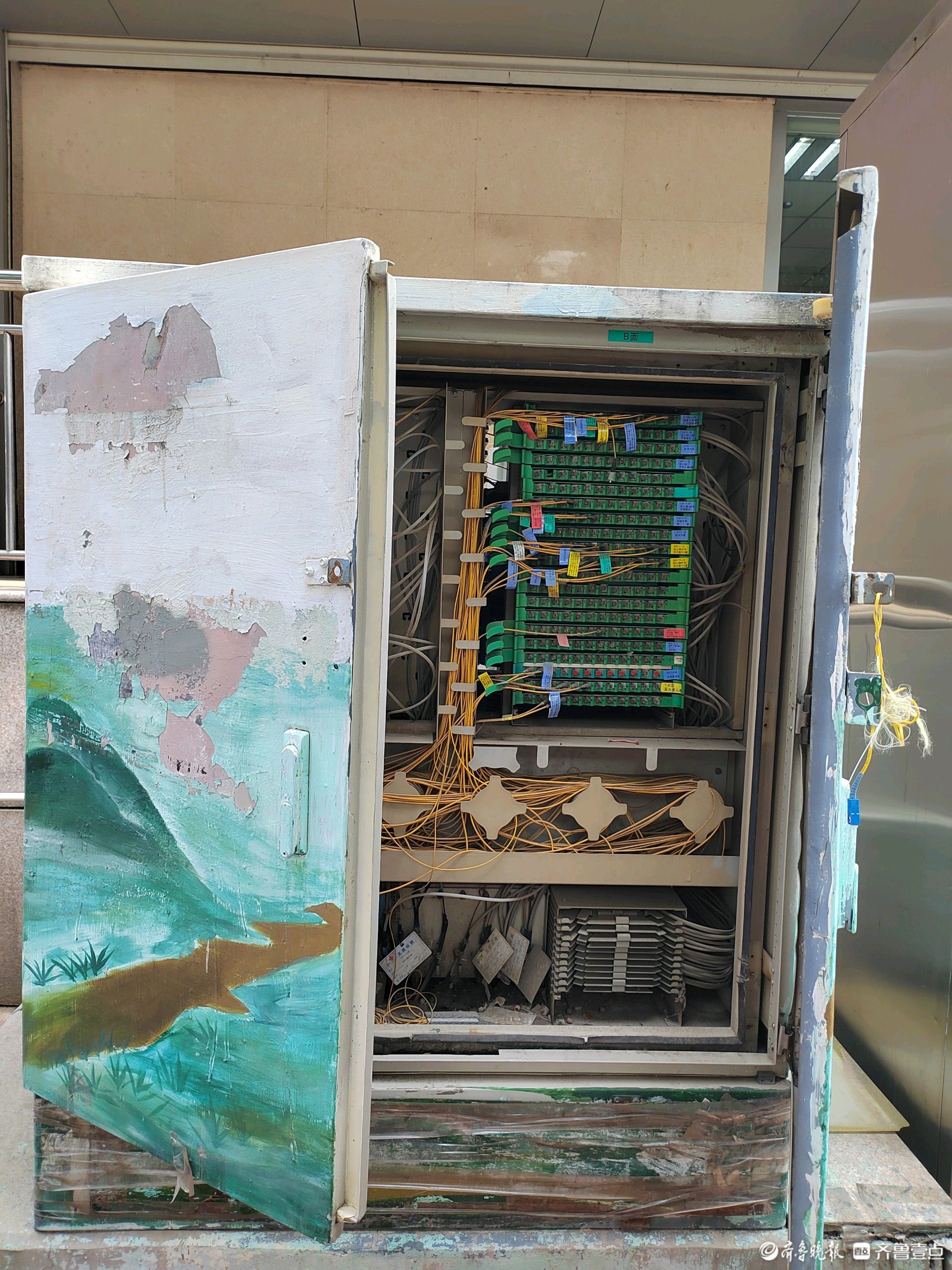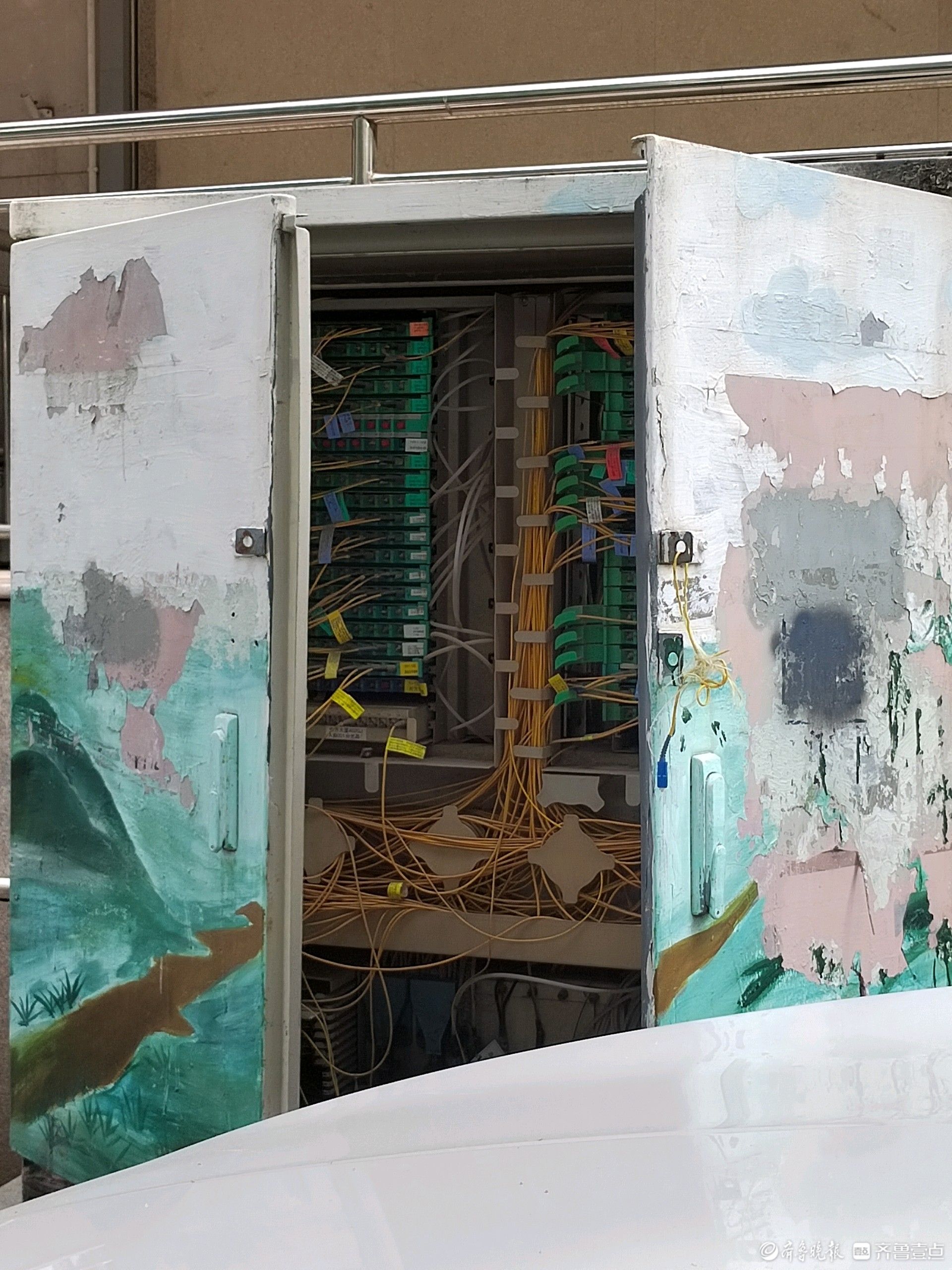 情报站·随手拍|济南经七路一通信箱大门敞开,线缆裸露存隐患