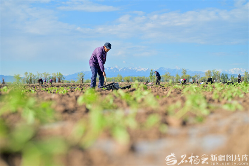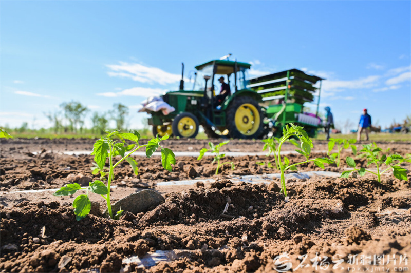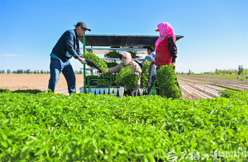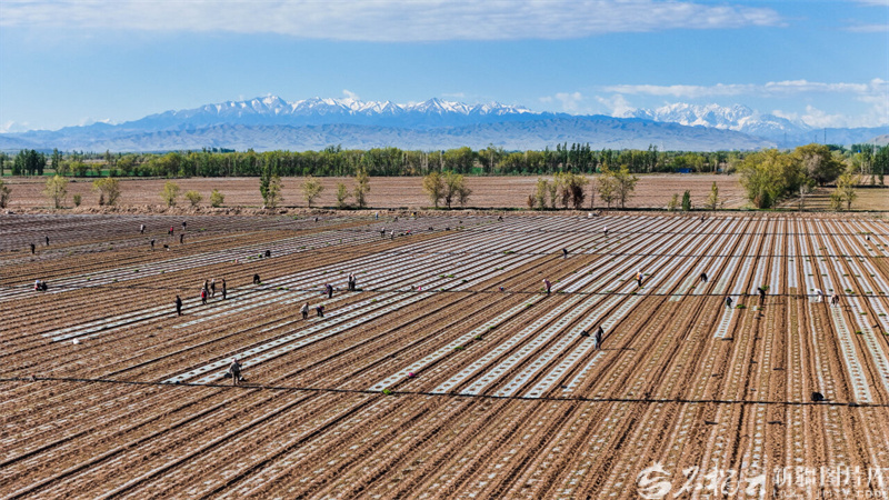 4月26日,呼图壁县园户村镇上三工村,番茄种植户抢抓农时,全面展开番茄苗移栽工作。当地因地制宜,实行人工移栽与机械化移栽相结合,不仅高效推进了春耕进度,更为今年加工番茄丰产丰收按下了“加速键”。通讯员陶维明摄