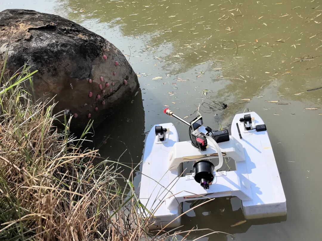 刘聪辉介绍,目前研发了两款轻质量骨架的两栖机器人,具备多模态图像识别能力,能精准识别福寿螺及其卵块,分工明确,高效出击。