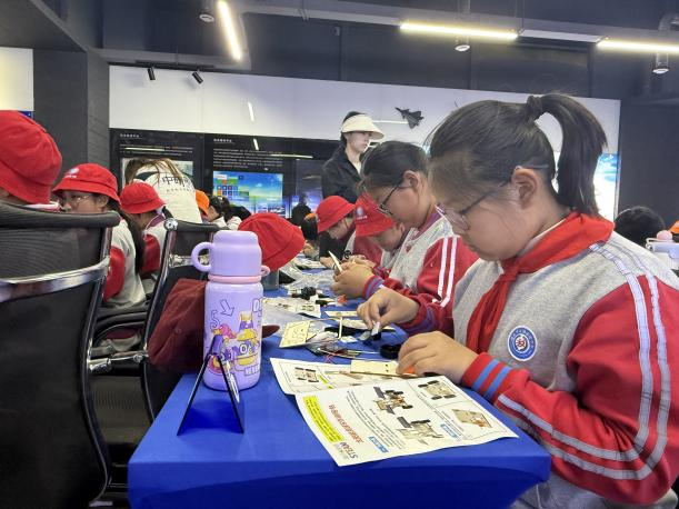 在学习空天知识之后,同学们汇聚科普教室,分组进行月球车手工模型制作。大家化身“小工程师”,认真阅读图纸、辨识零件,遇到困难时互帮互助,在动手中锻炼思考能力与团队协作精神。