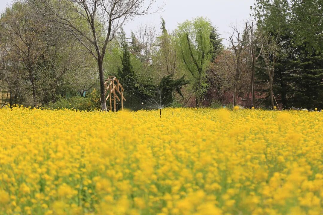 春风十里,不如油菜花海铺天盖地。五一假期临近,济南植物园内的香草园片区,万余平方米的油菜花海已进入最佳观赏期。一望无际的油菜花田如同金色的绸缎铺展开来,与蓝天白云相接,勾勒出油画般的田园景致。微风吹过,花浪滚滚,花香扑鼻。“人在花中走,如在画中游”,随手一拍都是朋友圈的“点赞收割机”。大众新闻·齐鲁壹点杜春娜