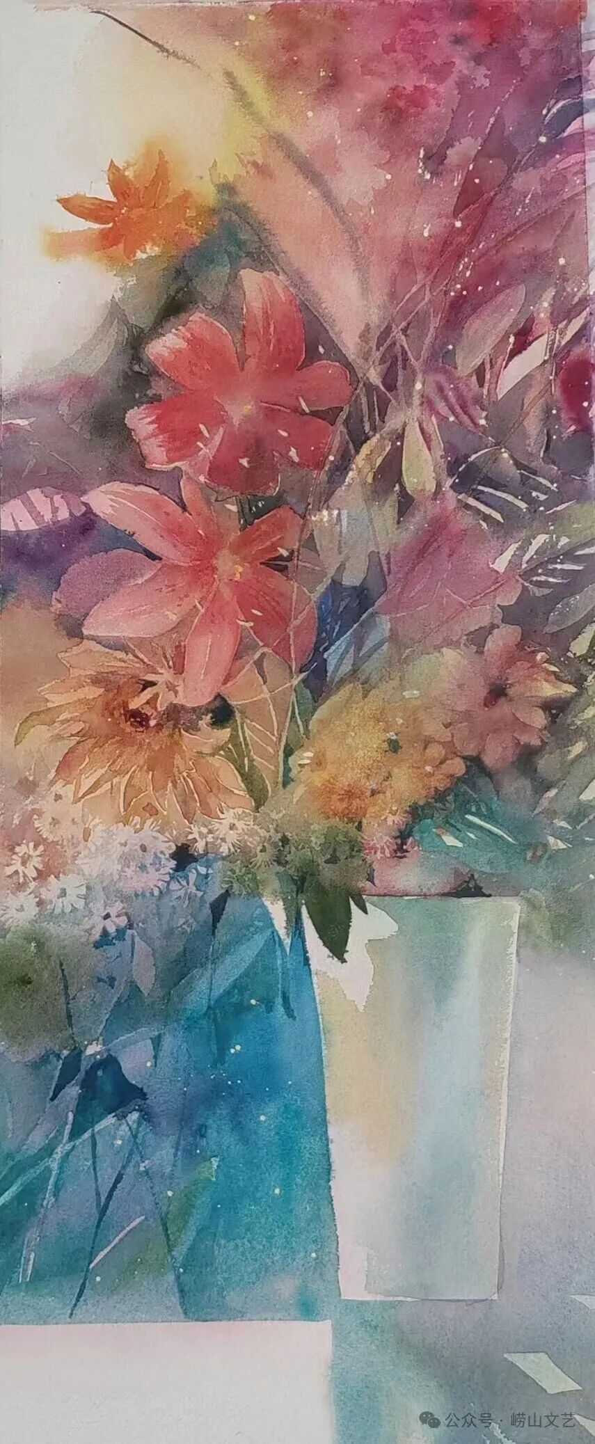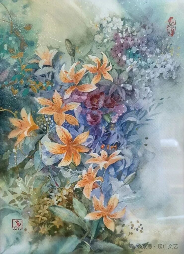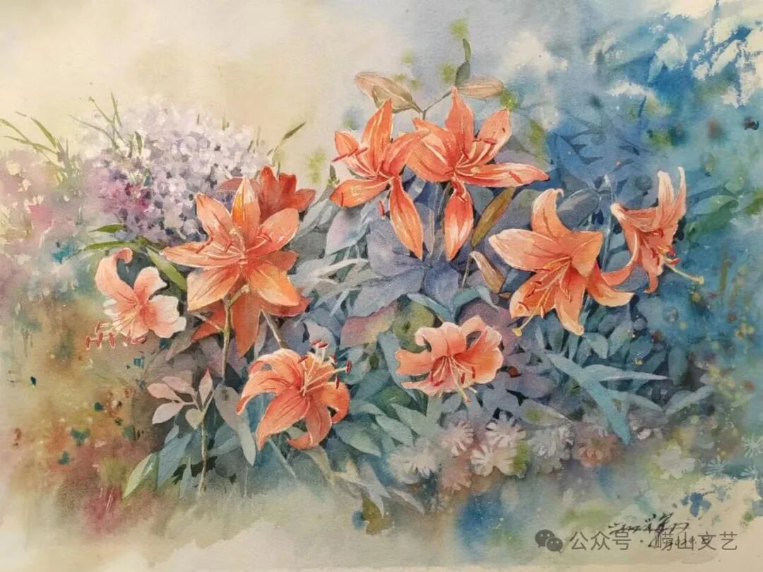 “每一朵花,都是自然绽放在世间的精灵” ,于我而言,创作崂山珍稀花卉水彩作品是一场与自然的对话,更是对故土深情的抒发。崂山的花,生于山海之间,自带清灵之气,每一种都有着独特的风骨与韵味。为呈现这份独特之美,我深入崂山腹地,近距离观察每一种花卉的形态、肌理与色彩。从冰清玉洁的天女木兰,到幽谷沁香的百合,我不仅捕捉其外在姿态,更试图捕捉其内在生命力。水彩的通透灵动,与崂山花卉的清新雅致相得益彰,以水彩留住崂山花影,画出“生于山海,归于本心”的勃勃生机。希望这些作品能定格崂山花卉的美好,让更多人领略崂山自然之美,感受文艺与故土的紧密联结。