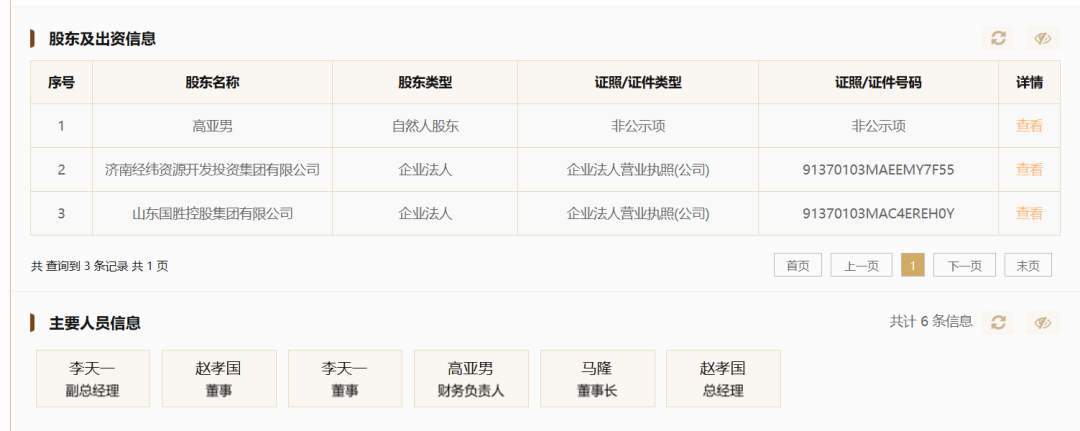 励新凯瑞注册资本3000万元,注册地址为济南市市中区。股权结构显示,公司股东分别为高亚男、济南经纬资源开发投资集团有限公司(下称“济南经纬投资”)、山东国胜控股集团有限公司(下称“山东国胜控股”),三者分别持股49%、41%、10%。励新凯瑞主要人员信息显示,公司法定代表人、董事长为马隆,赵孝国为董事、总经理,李天一为董事、副总经理,高亚男为财务负责人。