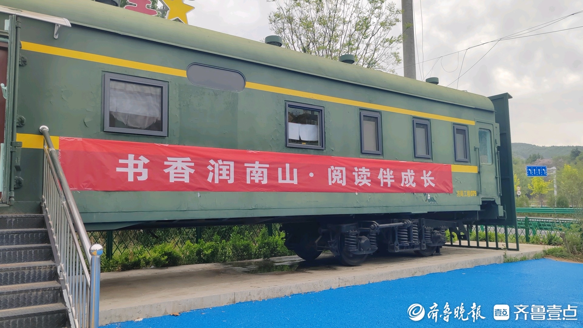 在南部山区的柳埠大集广场,这里有一节绿色的火车车厢,藏有15000余册图书。这节绿色火车车厢被命名为“星星书屋”,成了南部山区孩子们最爱的阅读天地。