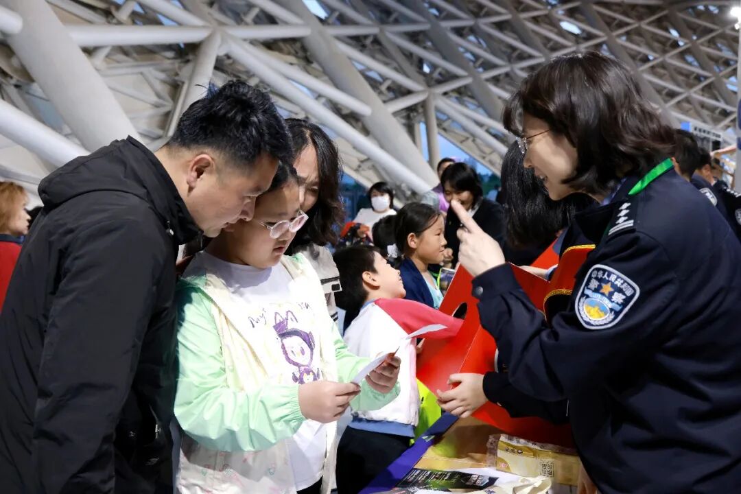 南门的安防宣传摊位成了热门“打卡点”:互动小游戏、答题赢小熊……球赛之余,观众在互动中提升安全防范意识,笑声与欢呼此起彼伏。