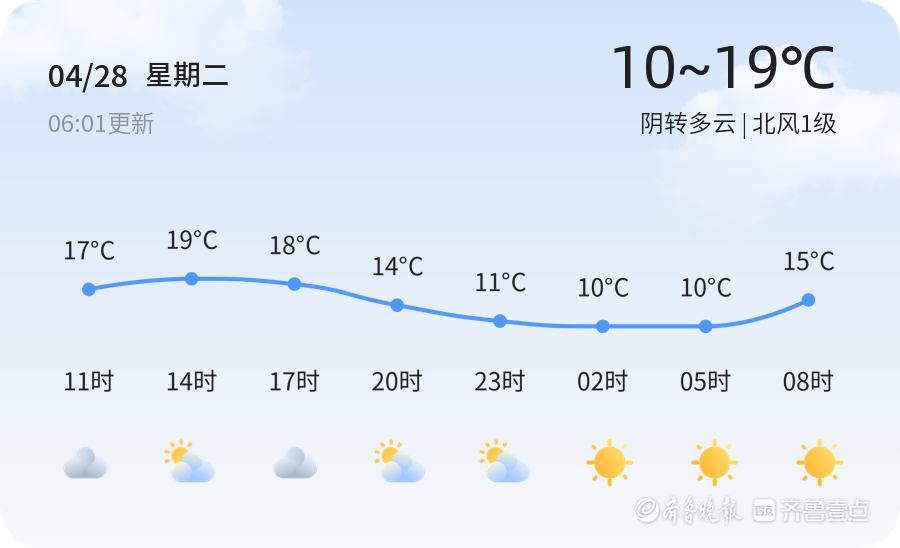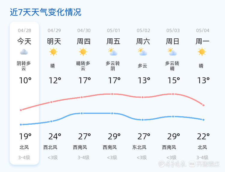 淄博市今日天气阴转多云,未来三天气温逐步回升
