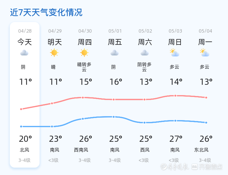 今天是4月28日,星期二,农历三月十二。济宁市今日天气以阴天为主,气温在11℃至20℃之间,东风1级,空气湿度较高,PM2.5指数为62。各区天气情况基本一致,阴天为主,温度适中,风力较小,整体天气较为平稳。