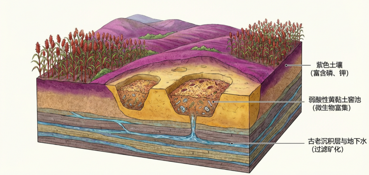 如果说气候是酿造之魂,那么土壤则是孕育之母。宜宾的地质条件同样是“天赋”的重要组成部分,为高粱、大米、糯米等作物的生长和酿酒微生物的栖息繁衍提供了物质基础。
