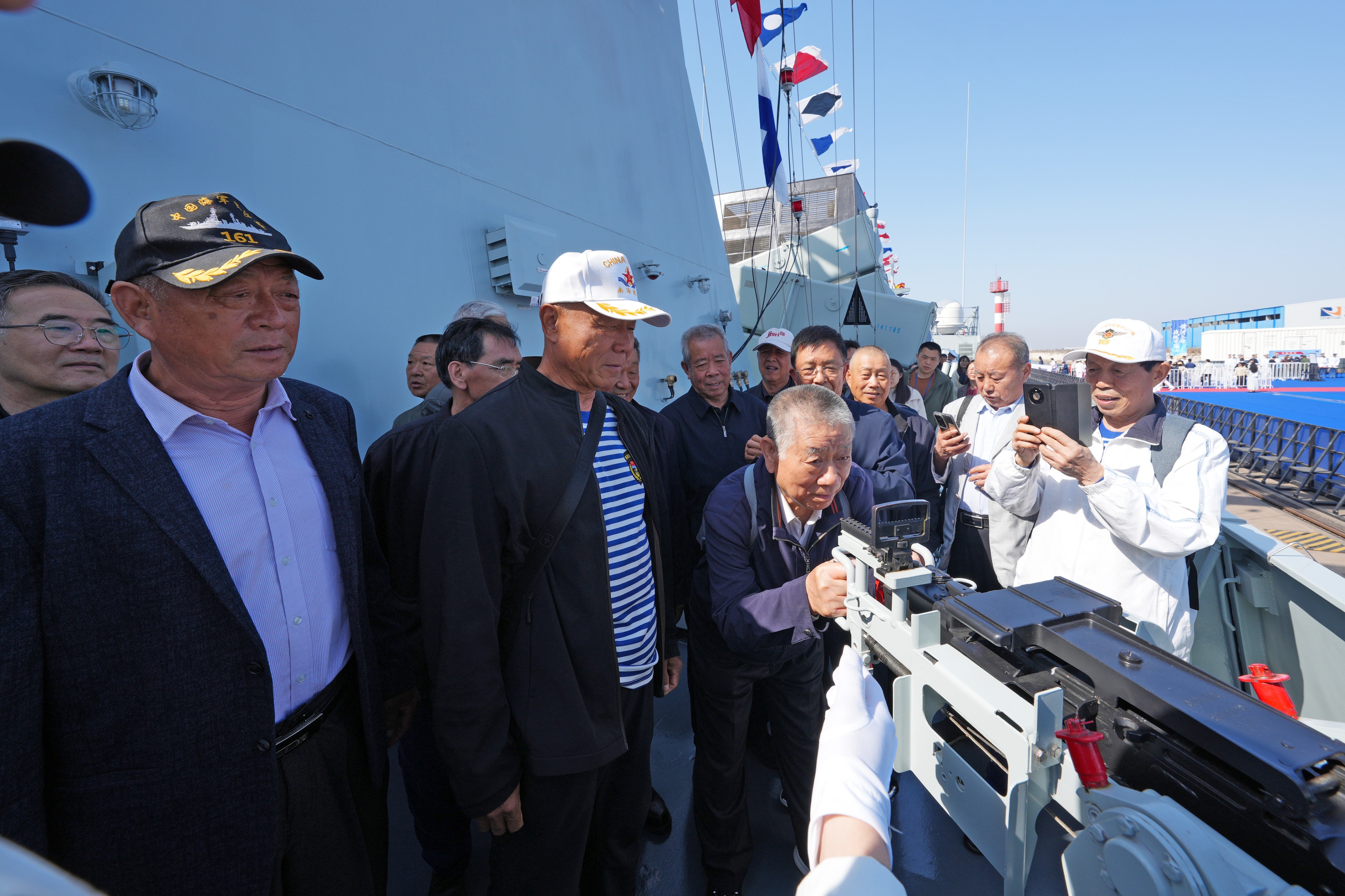 东营籍海军退役老兵登上东营舰体验现代化的武器装备。(图片由东营舰提供)