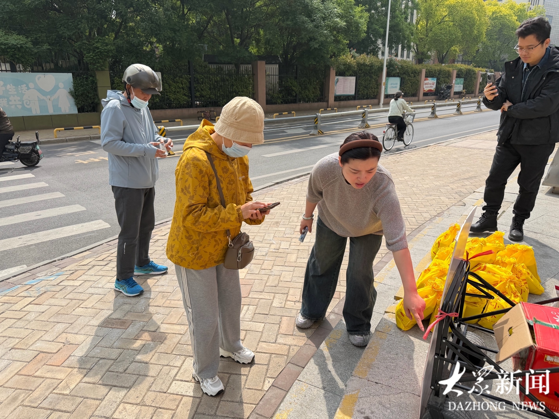从上午九点到中午,摊位前的人就没断过。有人买一袋小米,扔下一百块钱,说“不用找了”;有人放下几袋红枣,扫码付了两倍的钱,转身就走;还有一位大爷走过来,什么也没说,掏出钱塞到龚爱芹手里,还没来得及问名字,他已经走远了。