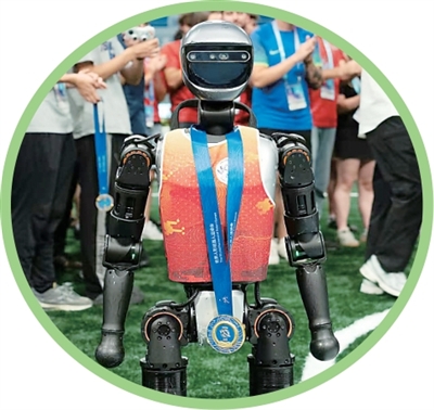 国家速滑馆“冰丝带”,世界人形机器人运动会足球5V5决赛终场哨响,比分定格在1∶0,我(见图一,清华大学供图)和队友们开心极了:我们赢了!