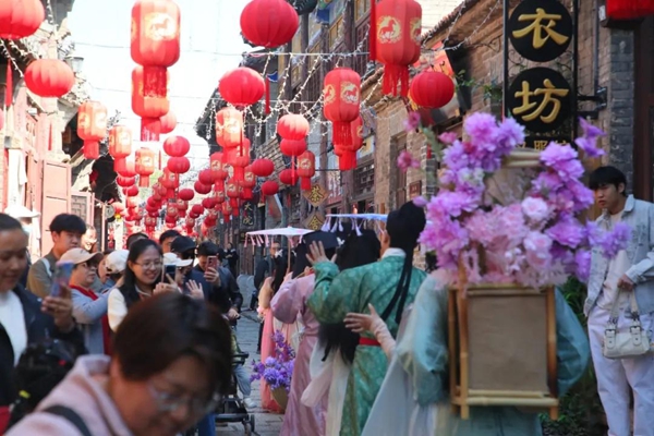 The ancient town in Zhoucun district of Zibo, Shandong province, is bustling with tourists. [Photo by Zhang Jing/for chinadaily.com.cn]