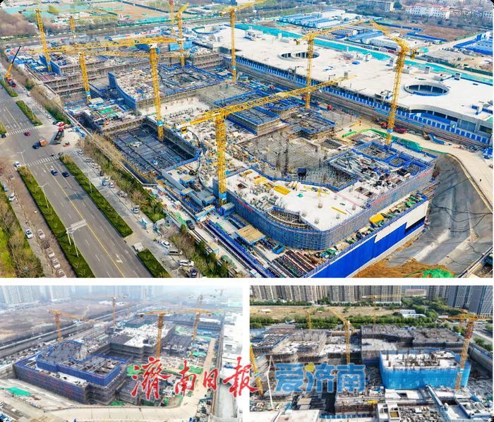 该项目体量大、结构复杂、工期紧张,项目团队抢抓施工黄金期,科学统筹、高效推进,施工现场划分为40个施工段,近700名建设者昼夜奋战,全力攻坚,目前,垫层完成93%,地下结构完成85%,部分区域已快速施工至地上三层,济南商业新地标已初露峥嵘。