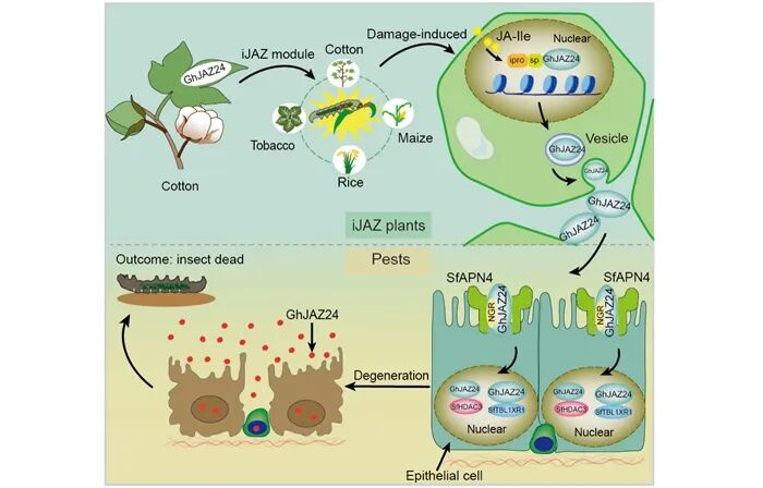 近日,中国农业科学院棉花研究所棉花分子遗传改良创新团队自主研发的新型植物源抗虫蛋白——茉莉酸结构域蛋白以1000万元授权相关公司。