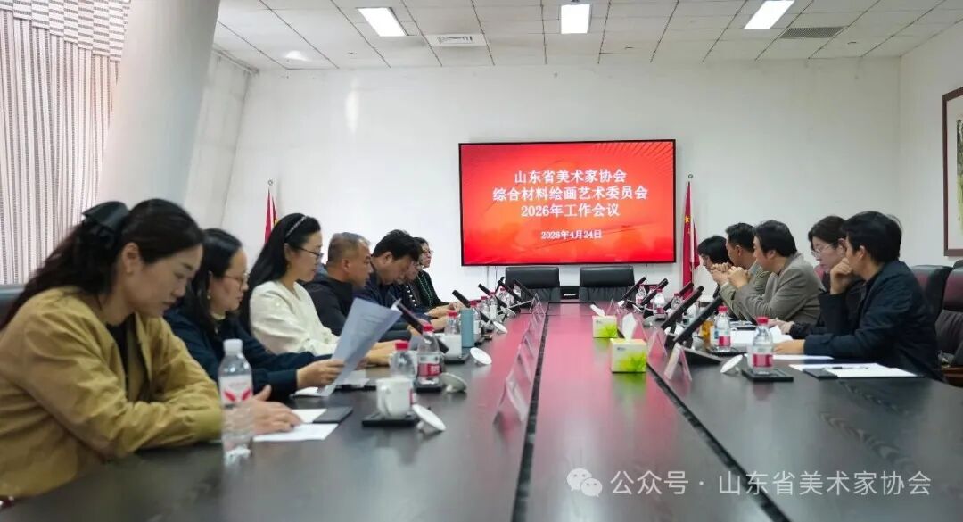 4月24日,山东省美协综合材料绘画艺术委员会2026年度第一次委员会议在济南市美术馆召开。会议围绕谋划艺委会工作布局、凝聚行业共识、明确发展方向,推动我省综合材料绘画艺术的学术理论研究、创作展览推广与青年人才培育等议题展开深入研讨。中国女画家协会副会长、山东省美协主席团委员孙肖嘉,综合材料绘画艺委会主任李济民,副主任吴震、涂少辉,秘书长娄萧,副秘书长赵鹏飞、徐立峰、张爱丽、钱凯及全体艺委会委员出席会议。