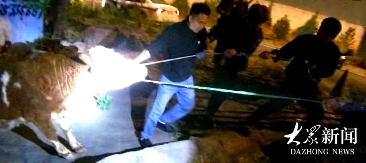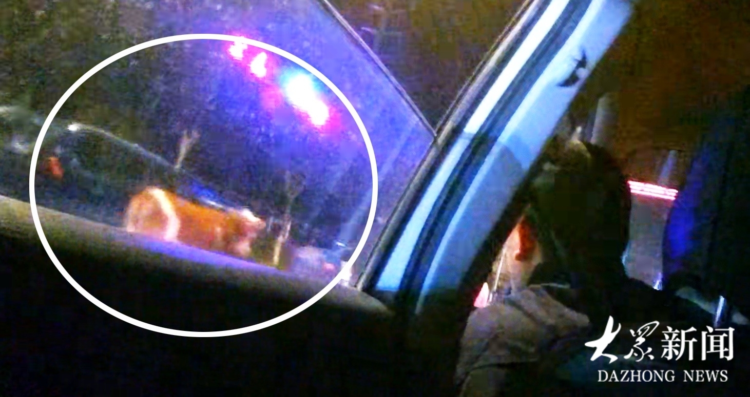 “越狱”公牛公路“遛弯” 民警客串“牧牛人”化险为夷