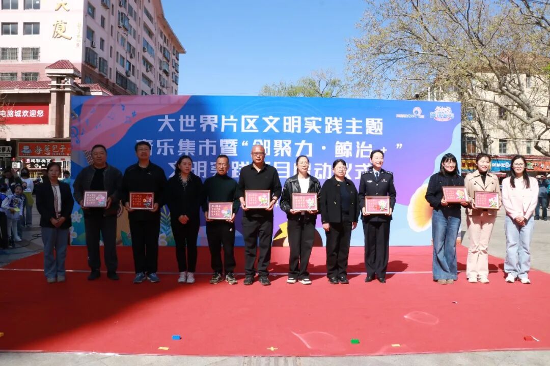 为推动片区共建走深走实,大世界片区四社区打破壁垒、整合力量,按照学校、村庄、协会、共建单位四大类别精准结对、定向帮扶,正式组建“联薪”“联智”“联美”“联建”四支特色新时代文明实践队。授旗仪式上,鲜艳旗帜依次传递、迎风舒展,标志着四方力量正式携手并肩,分别以教育赋能、乡土智慧、文艺润心、多元共建为方向,以专业优势扎根基层、服务居民。随后,四位新时代文明实践站站长为共建单位、学校、协会及村社代表赠送结对信物。这些信物均为片区居民亲手钩织而成,每一件都绣有专属寄语,饱含着真挚心意。一份信物、一份承诺、一份担当,现场掌声阵阵,温情与力量在人群中传递流淌。