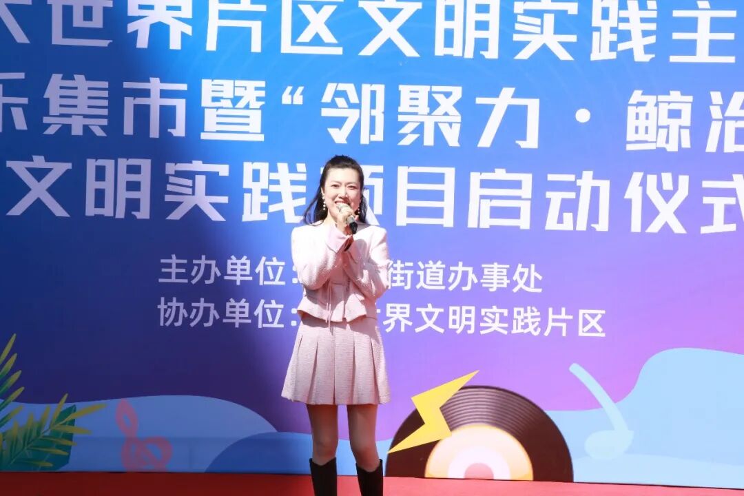 “今天我们以文明实践为纽带、以音乐集市为平台,打破社区界限、整合多方资源、凝聚各方力量,就是要把分散的资源聚起来、孤立的力量合起来、邻里的心贴起来。”上午9时,活动在热烈欢快的氛围中正式拉开帷幕。鲸园街道党工委组织委员、大世界片区片长王美娇上台致辞,围绕片区共建、资源共享、文明共创,分享了“邻聚力·鲸治+”文明实践项目的初心与愿景,传递出街道深耕基层、服务居民的坚定决心。