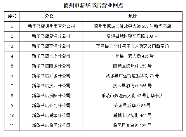 德州市参与活动的新华书店