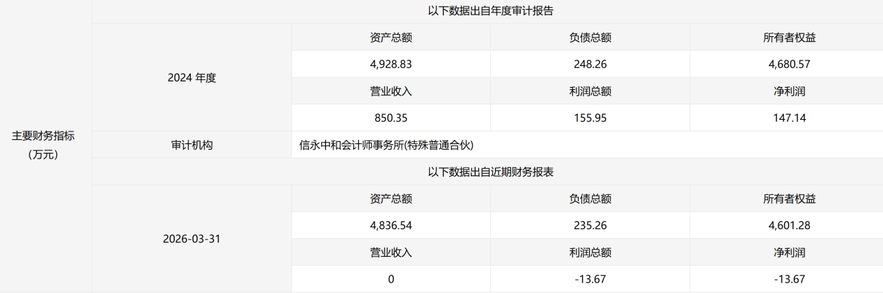 财务数据方面,2024年宁津众兴水务实现营业收入850.35万元,利润总额155.95万元,净利润147.14万元。值得注意的是,2026年一季度,公司未产生营收,利润总额为-13.67万元。截至2026年一季度末,公司资产总额4836.54万元,负债总额235.26万元,所有者权益4601.28万元。