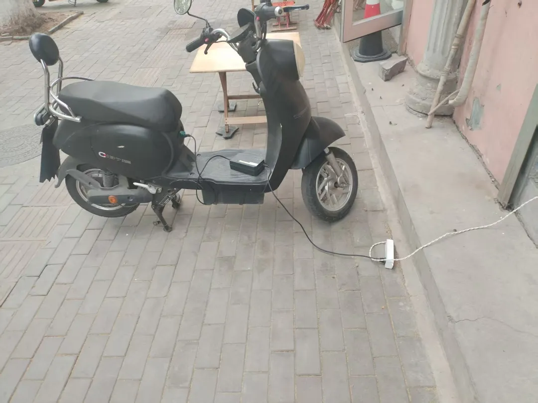存在违法违规情况:该商铺门前存在违规私拉乱接电线为电动自行车充电情形。