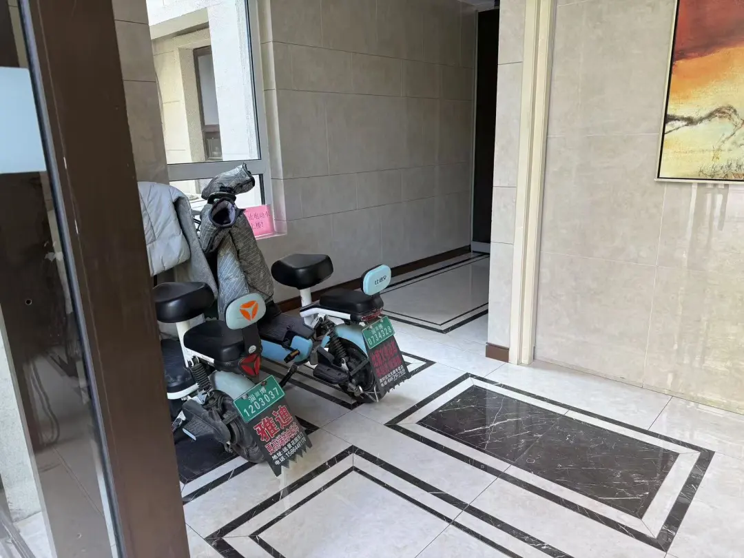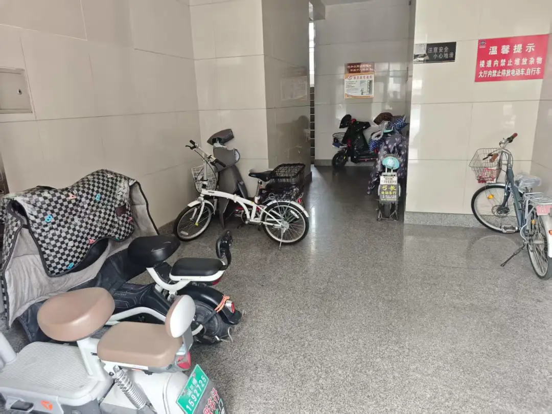 存在违法违规情况:21#楼1单元公共门厅内违规停放电动自行车,占用安全出口。