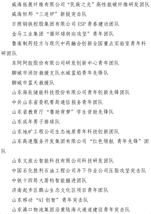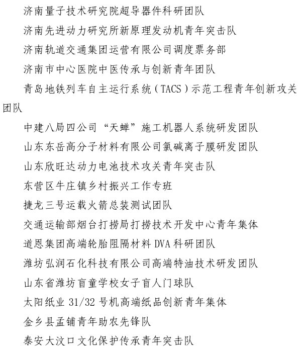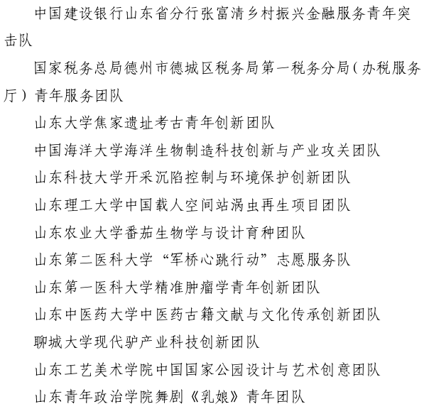 第27届山东青年五四奖章集体名单(共50个)