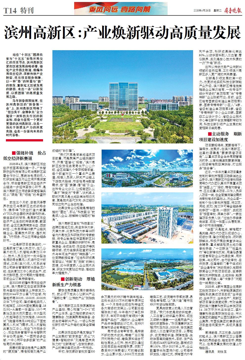 站在“十四五”圆满收官与“十五五”宏伟开局交汇的历史节点,滨州高新区紧扣区域发展战略部署,锚定产业升级主航道,前瞻布局低空经济,深耕传统产业转型,优化项目服务保障,以一种“势”的积蓄与“能”的勃发,重新定义区域发展的能级,走出一条“以新促质、以质图强”的高质量发展之路。